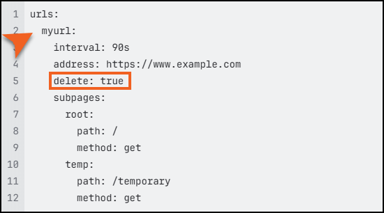 You can now modify or remove a configuration for a URL and/or subpage using the new delete YAML option. This feature removes associated entities on both the URL and subpage levels stored in your SAM configuration file. Using the delete option is a best practice for keeping your system clean and clear of redundant site names.